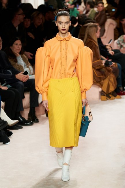 FendiОдним из самых женственных трендов этой осени являются блузы с гиперобъемными рукавами. Так, в коллекции Victoria Beckham можно встретить элегантный вариант с епископскими объемными рукавами, которые расширяются к низу изделия и собираются на манжет или резинку – дизайнер предлагает комбинировать такую блузу с бархатной юбкой-карандаш. Тем временем, у Tom Ford представлена блуза с гиперболизированными рукавами "летучая мышь" в главной расцветке эпохи хиппи.