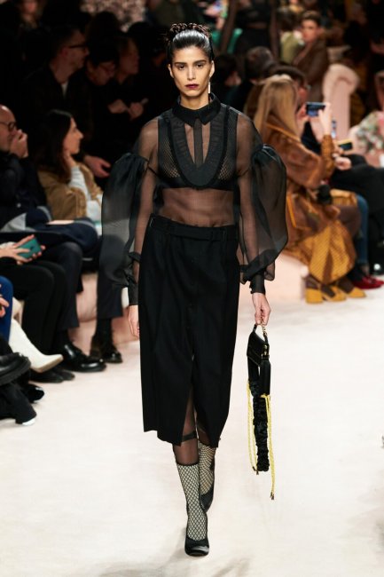 BalmainЧерные полупрозрачные блузы всегда вызывали горячие обсуждения в женском обществе. Одни утверждают, что они смотрятся слишком провокационно, другие восхищаются их красотой и смелостью девушек, которые могут себе позволить надеть такую вечернюю блузу. Тем временем дизайнеры продолжают петь оды блузам из черного шифона и сетки, делая акцент в новом сезоне осень-зима 2020/2021 на объемные рукава. Даже Max Mara не смогли устоять перед шармом полупрозрачных блуз, продемонстрировав вариант с рукавами-буфами.