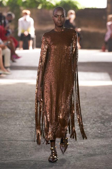 Isabel MarantДля модниц, предпочитающих длину миди или макси, дизайнеры также подготовили нечто интересное. Valentino показали богемное платье с ниспадающей блестящей бахромой, достающей вплоть до щиколоток - такой образ будет особенно эффектно смотреться в движении, а значит танцевать придется много. Celine предложили вниманию мерцающее темно-синее платье, напоминающее звездное небо, а Balmain воспели эстетику нулевых. Так, Оливье Рустен, вдохновившись культовыми образами звезд, в числе которых Пэрис Хилтон, Ким Кардашьян, Кьяра Ферраньи, Кендалл Дженнер, показал блестящее платье-кольчугу с открытой спиной на тонких бретельках.
