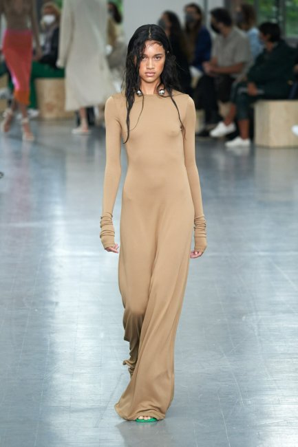 JacquemusМинимализм – один из ведущих трендов 2021 года. Многие бренды отказались от пестрых принтов, многочисленного декора и сложносочиненных силуэтов в пользу чистых линий, лаконичного кроя и природных оттенков. В коллекциях дизайнеров значительную нишу заняли именно вневременные минималистичные платья. Так, Sportmax показали образ, имитирующий "вторую кожу", Boss сделали ставку на платье-поло в длине макси, а Bevza представили лаконичное платье в оттенке айвори, в котором можно пойти на роспись.