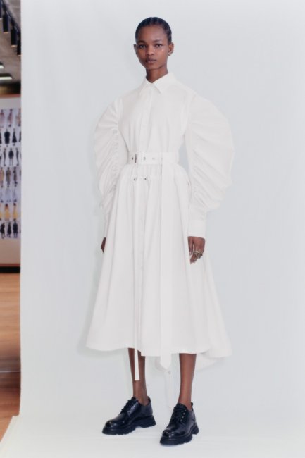 Victoria BeckhamОбразы с акцентом на линии плеч по-прежнему популярны среди брендов. Так, Isabel Marant предложили цветочное мини с V-образным декольте и воздушными плечами, которые дизайнер комбинирует с ботинками-казаками, а Alexander McQueen показали платье рубашечного кроя с ультра-объемными рукавами, напоминающими плавники рыб. Можете смело покупать платья с объемными плечами, в 2021 году они будут актуальны.