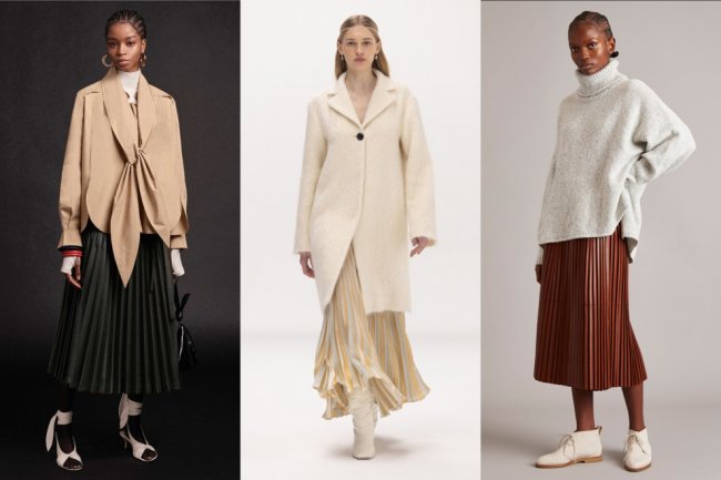 При упоминании плиссировки одними из первых на ум приходят образы принцессы Дианы, которая носила их постоянно. Современные дизайнеры предлагают сочетать плисе с элегантными оверсайз-рубашками, свободными поло и облегающими пальто.