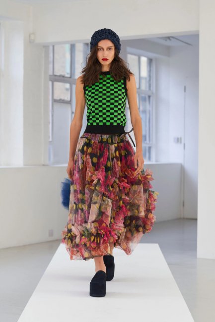 Each x OtherLutz HuelleСвое видение тренда продемонстрировали Off-White, добавив к шелковой блузе с шахматным принтом флористические элементы, и Molly Goddard, разукрасив трикотажный принт в неоново-зеленый. Преимущество такого принта в его универсальности: он может послужить как и полотном для стилистических экспериментов, так и стать главным героем всего образа. Дополнить наряд советуем украшениям в цвете золота, объемной сумкой и обувью на массивной подошве.