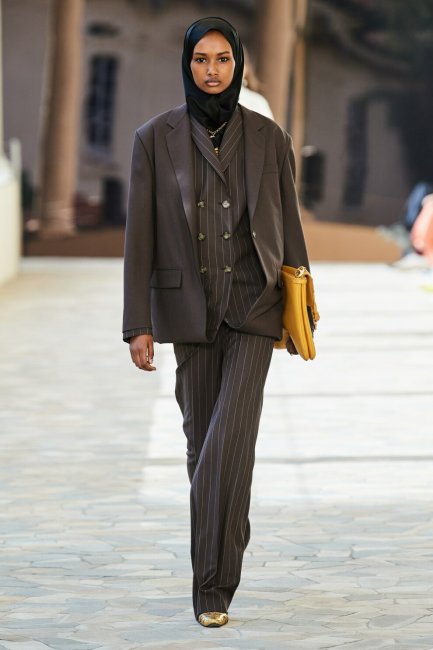Max MaraБрючные двойки, украшенные строгими тонкими полосками, – классический и вневременной костюм. Если ранее подобный дизайн предпочитали супермодели Синди Кроуфорд и Эмбер Валлетта, то сейчас костюмы в мелкую полоску носят Белла Хадид, Кайя Гербер и Эмили Ратаковски. Пожалуй, один из самых элегантных вариантов для деловых встреч показали Max Mara – бренд представил костюм-тройку в темно-синем оттенке, состоящий из широких брюк, приталенного жакета и топа в тон образу, вместо жилетки. Еще один брючный ансамбль представили Michael Kors Collection. Дизайнер сделал ставку на строгий графитовый костюм с белыми вертикальными полосками, который можно обыграть с помощью воздушной асимметричной блузы для более расслабленного образа. Для девушек, которые находятся в поиске нетривиальных брючных костюмов, стоит обратить внимание на коллекцию Ports 1961.
