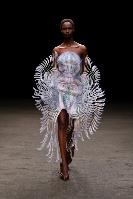 Даже кутюр в лице Iris van Herpen не остался в стороне. Вслед за прошлогодней коллекцией под названием Sensory Seas, в которой исследовалась связь между биологическим устройством морских организмов и нервной системой человека, недавняя презентация весенне-летней коллекции бренда посвящалась океану: голландский кутюрье сотрудничал с организацией Parley for the Oceans, занимающейся проблемами загрязнения, – это нашло свое отражение в платье, созданном из переработанного пластика. Как сказала Херпен Vogue: «Больше нет больше причин не использовать экологически чистые материалы, достаточно просто изменить свое мышление».