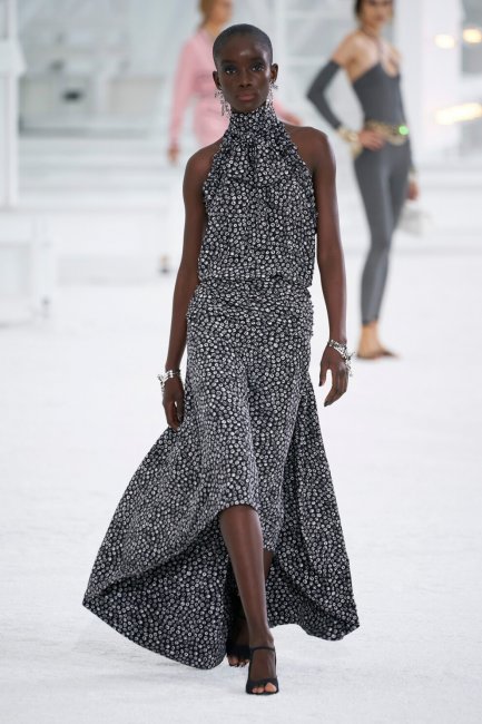 ChanelПлатье-халтер - модная покупка сезона весна-лето 2021. Предлагаем подборку актуальных образов - от минималистичного варианта Victoria Beckham до платья с эффектом деграде Marchesa Notte.