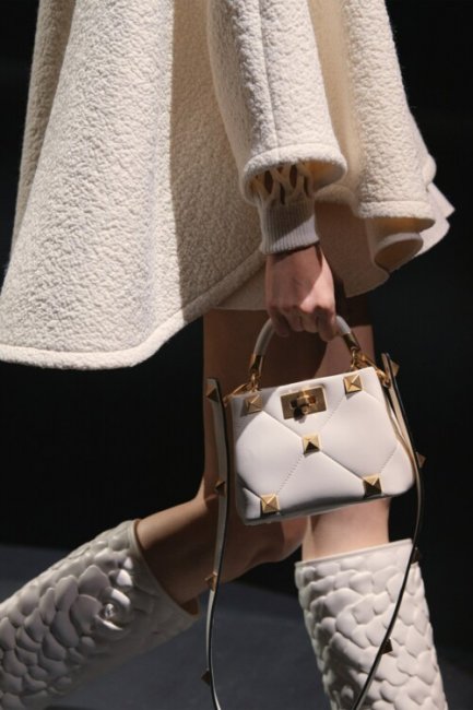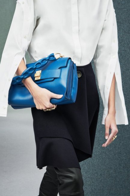Сумки с ручкой-цепью, занимающие лидирующую позицию во всевозможных рейтингах, останутся с нами и осенью. С характерными шипами от Valentino, миниатюрные, но не менее соблазнительные от Louis Vuitton - дизайнеры также продемонстрировали новый тренд на "мультяшные" цепочки из контрастных материалов, как у Longchamp, Ports 1961 и Acne Studios.