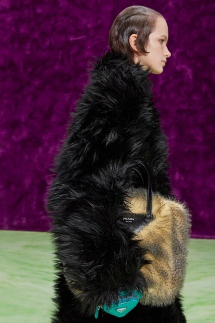 Если возвращение к социальной жизни вызывает непреодолимое желание поспешно скрыться на диване в гостиной, то этот вариант для вас. Самая приятная тенденция осени - это сумки с пушистой и мягкой текстурой, которые можно прижать к телу, как собаку-терапевта. От вариантов с короткой шерстью, как у Celine и Tod’s, до "лохматого" искусственного меха, как в коллекциях Miu Miu, Prada, JW Anderson и Chloé.