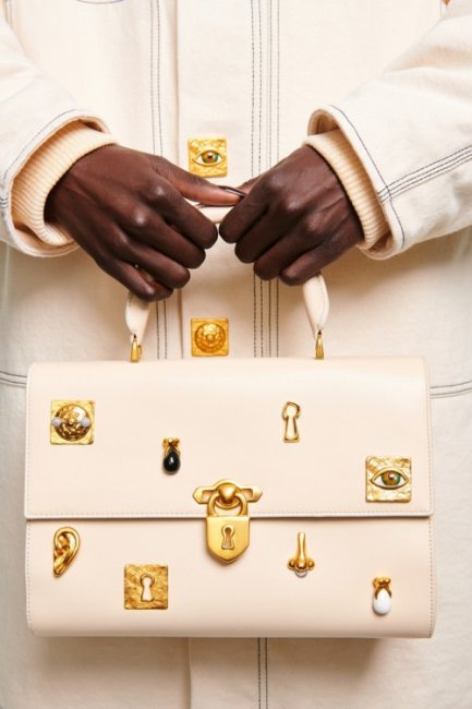 Навесные замки постепенно возвращаются на застежки и ручки роскошных сумок с тех пор, как Мэтью Уильямс внедрил их в Givenchy. Его первым обновлением популярной сумки Antigona стало добавление массивного замка, поскольку он назвал фурнитуру одновременно символом своей приверженности французскому дому и напоминанием о любви, отсылающим к замочкам на Мосту искусств в Париже, которые вешают влюбленные. Ни разу со времен сумки Chloe Paddington мы не видели столько замков, сияющих на фоне кожи - у Loewe, Louis Vuitton, Versace, Celine и многих других.