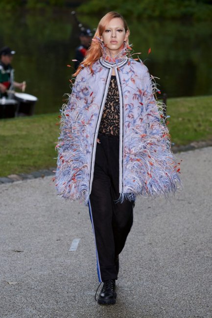 Salvatore FerragamoСпортлотоМы уже привыкли, что спортивную одежду можно легко смешивать с деловыми пиджаками или романтичными платьями. Этим же летом нам дизайнеры предлагают выходить на новый уровень и без стеснений сочетать брюки в спортивном стиле с нарядным кейпом, расшитом перьями. Таким ярким образом подытожил свою весенне-летнюю коллекцию бренд KOCHE.