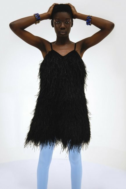 No.21МинимальноВписать в свой вечерний гардероб перья могут даже поклонники минималистичного стиля. Им советуем обратить внимание на образы, созданные в одном цвете. Например, украинский бренд GUDU этим летом предлагает носить платья на тонких бретелях, декорированные пушистыми перьями. Дополнить их можно лаконичной обувью и аксессуарами.