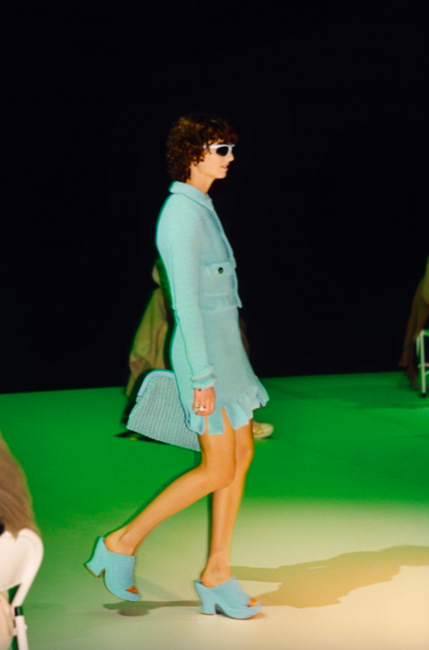 Bottega VenetaВозвращение коротких юбок за пределами подиумов также ощущается в Instagram и TikTok: Кайли Дженнер отдает предпочтение обтягивающим мини от Versace и Ottolinger, которые она сочетает с яркими мюлями Amina Muaddi. Певица Розалия – еще одна фанатка миниатюрных платьев из эластичной ткани. Для своего образа она выбрала комплект от нью-йоркского бренда Cool Is A Construct.