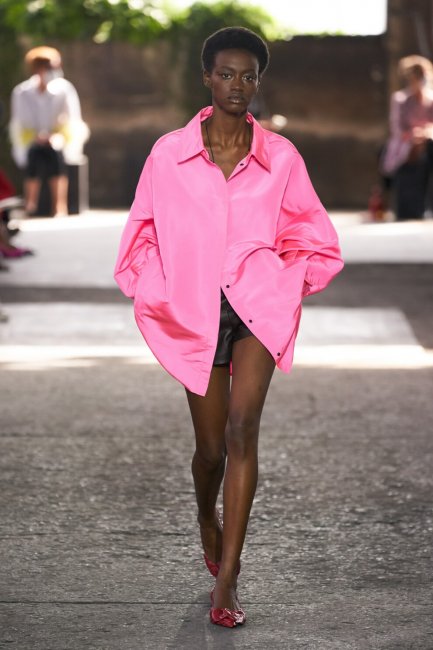 В отличие от вышеупомянутых моделей Chanel, вам не обязательно носить розовое с головы до ног, чтобы заявить о себе. Просто наденьте ярко-розовый аксессуар или украшение, чтобы освежить ваш летний гардероб. Если вы все же осмеливаетесь надеть нечто большее, чем просто аксессуар, обратите внимание на шелковую рубашку маскулинного кроя Valentino, которая стала знаковой деталью коллекции весна-лето 2021. Более того, в тренде также спортивные бомберы Miu Miu, которые могут стать хорошим вариантом на каждый день, то же самое можно сказать и о капсуле Ganni «Software». Не забудьте про обувь. Ярко-розовые туфли на фигурном каблуке Amina Muaddi - идеальный выбор для вечеринки, а сандалии Gucci с резиновыми пряжками уже одобрили многие знаменитости.