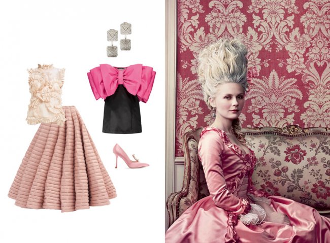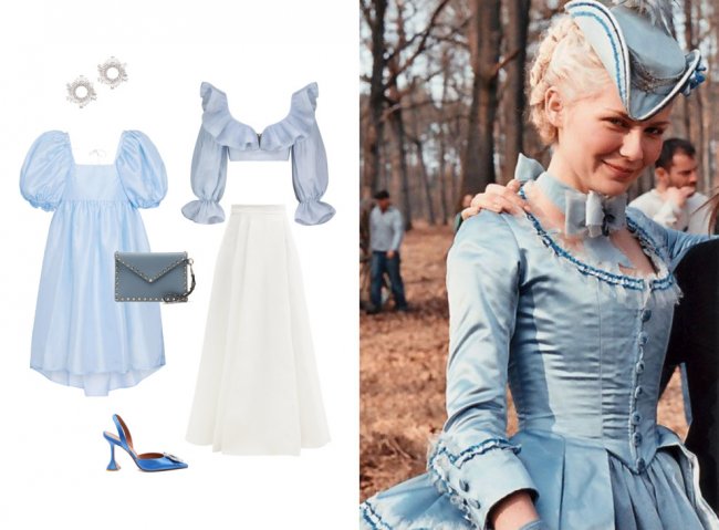 Кадр из фильма "Мария-Антуанетта"Выше облаковОбраз актрисы Кирстен Данст в фильме "Мария-Антуанетта" стал одним из самых запоминающихся за последние 15 лет. Режиссер ленты София Коппола не стала дословно цитировать ту эпоху, а показала ее глазами юных тинейджеров, сделав акцент на десертной цветовой гамме и заводной музыке. Один из ключевых нарядов, которые Данст примеряла в кадре – голубое корсетное платье с округлым вырезом, современную версию которого можно обыграть с помощью топов с пышными рукавами или платьев с глубоким вырезом.