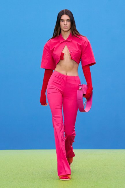 Jil SanderОдним из самых вирусных образов осенне-зимних коллекций стал наряд, который примерила Кендалл Дженнер во время шоу Jacquemus: укороченная рубашка, миниатюрный топ-"шторка" и брюки-клеш цвета фуксия - яркая и смелая альтернатива привычной бежево-коричневой гамме осеннего гардероба. Свою любовь к клешу и такому цветовому комбо показал и Раф Симонс: светло-розовые брюки дизайнер советует рифмовать с экстраобъемным худи.