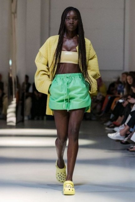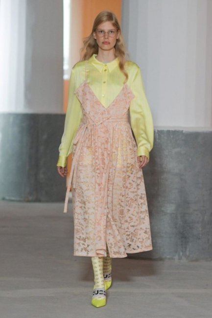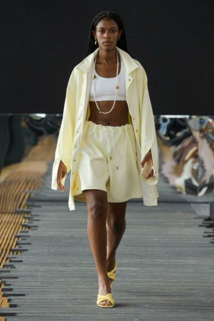 На Неделе моды в Копенгагене (в любом сезоне) никогда не бывает недостатка в цвете. Но в коллекциях весна-лето 2022 господствовал один оттенок: цитрусовый, кислый, пикантный. В Stine Goya, Baum Und Pferdgarten, Holzweiler и других брендах лимонный цвет появлялся на различных моделях: от платьев длины миди до брюк с заниженной талией. В основном, однако, лимонно-желтый на шоу носили с головы до ног в паре с массивными сандалиями или кроссовками в стиле ретро.