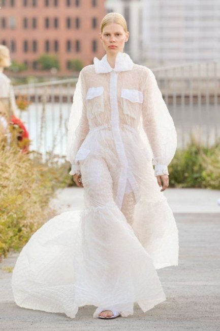 Прозрачные тканиПрозрачный трикотаж, слегка прозрачные блузки, прозрачное плиссе и вздымающаяся органза — сексуальность вышла на передний план в коллекциях копенгагенских дизайнеров. Белые платья, облегающие фигуру, стали особенным фаворитом на подиумах Ganni, Holzweiler и Stine Goya. И они могли бы с легкостью соперничать с превосходством маленького черного платья.