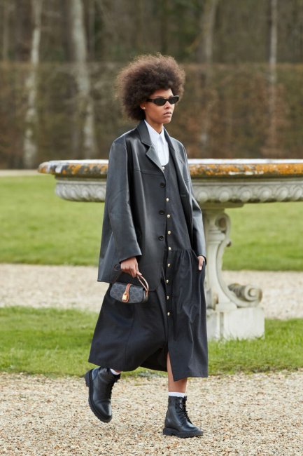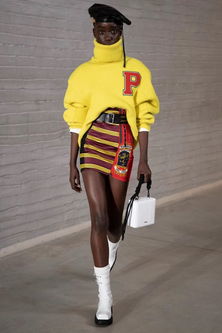 DiorШкольная черно-белая классика была замечена у Dior и Celine. Сочетание белоснежной блузы с крупными манжетами и сарафана длиной до колена, представленное Марией Грацией Кюри, - никогда не выходящая из моды школьная униформа. Эди Слиман же хоть и сохранил это комбо в своем образе, но добавил к нему дерзких деталей - кожаный пиджак, который был особенно популярен в прошлом году, и армейские ботинки на шнуровке. Еще один классический элемент стиля преппи - принт в клетку. Courreges украсили им укороченный жакет на молнии, дополнив наряд ультрамодной бейсболкой. BOSS же отделал двухцветной клеткой рубашку, носить которую бренд советует поверх однотонной водолазки.