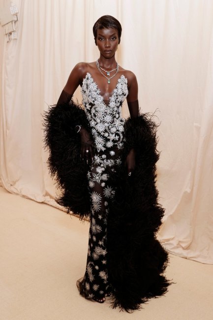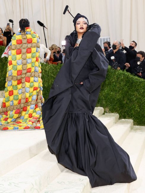 Кара Делевинь в DiorНе обошлось без драматический нарядов в этом году, за которые отвечали дизайнеры Демна Гвасалия и Том Браун. Так, Шерон Стоун надела черное платье с длинным шлейфом американского бренда Thom Browne, которое, по словам актрисы, было создано путем апсайклинга. Другой не менее эффектный наряд этого же бренда показала Эрика Баду - она надела черный сатиновый палантин с белыми атласными пуговицами, спортивную куртку и юбку на подтяжках из черного кавалерийского твила, а также лакированные ботильоны. Пока Шерон Стоун и Эрика Баду воспевали Thom Browne, Рианна и Ким Кардашьян отдавали дань уважения. Balenciaga, выбирая кутюрные total-black образы.