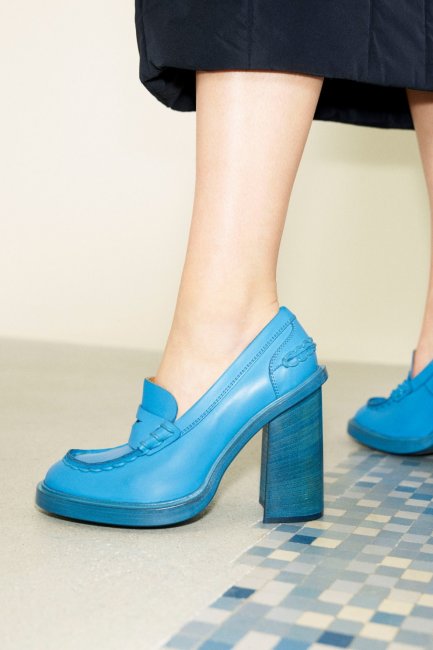 Лоферы на каблукеTod'sEсли в прошлых сезонах мы уже видели, как Gucci делали ставку на лоферы на высоком каблуке или платформе, то нынешний осенне-зимний сезон грозит стать пиком этой тенденции. Bally и Tod's присоединяются ко всеобщей лихорадке по семидесятым и делают лоферы на каблуке незаменимым элементом в сочетании с тканевыми пальто, мини-юбками или даже формальными костюмами.