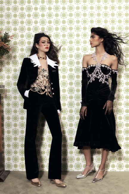 GucciКакая же вечеринка без бархатных платьев, которые давно полюбили знаменитости на красных дорожках. Вспомните образ на Галь Гадот на в коротком платье на запах Miu Miu, украшенным кристаллами Swarovski по всей длине и перьями марабу на рукавах, или выход Хейли Бибер в бархатном платье в пол Alessandra Rich с кружевными вставками, которое буквально облетело весь интернет. Так, если вы еще сомневаетесь какое платье надеть на новогодний корпоратив, то выбор очевиден. Наши фавориты представлены в коллекциях: Paco Rabbane, Isabel Marant и Alessandra Rich.
