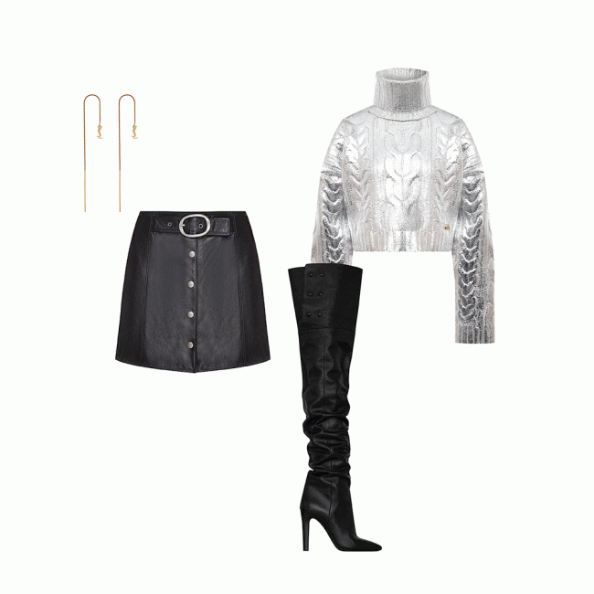 Шорты Balmain, юбка Saint Laurent, боди Saint Laurent, серьги Saint Laurent, боди Saint LaurentМежду нами, девочкамиЕсли новогоднюю ночь хочется провести с подругами, так почему бы не выбрать что-то игривое или кокетливое в стиле фильма "Бестолковые", который повлиял на все поколение школьниц 1990-х. Героиня Алисии Сильверстоун с одинаковым задором носила как клетчатые костюмы с мини-юбками, так и более минималистичные платья ярких оттенков, обязательно открывая при этом ноги.