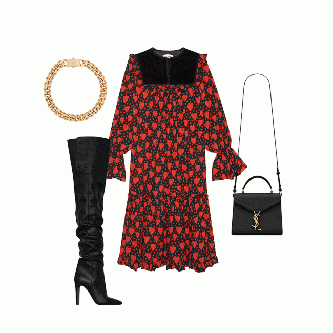 Кадр из фильма "Бестолковые"Нам нравится как стиль Girlish обыгран в последней коллекции Saint Laurent – сочетание длины мини, принта "в сердца" и сочетания красного с черным создает правильный баланс между игривостью и драматичностью образа. Дополнить его предлагаем классическими аксессуарами.