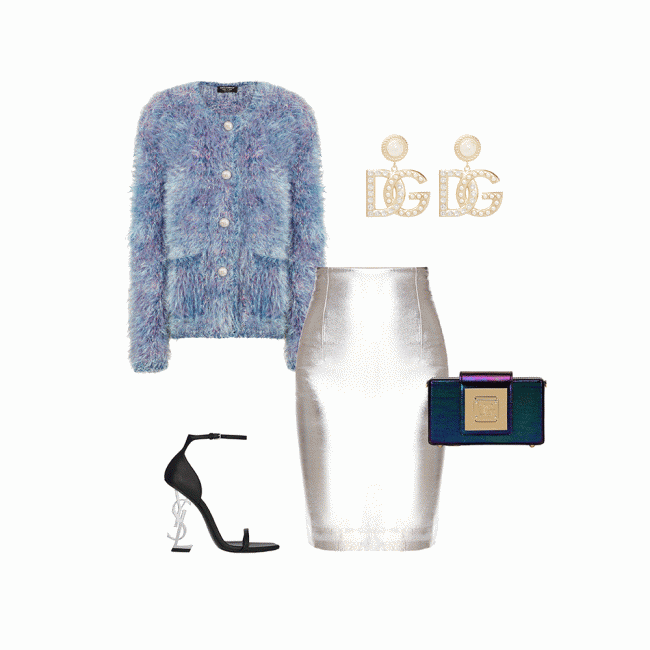 Здесь также на помощь готов прийти бренд Dolce & Gabbana, в последней коллекции которого есть платье-футляр с голограммным покрытием, а переливающиеся аксессуары лишь подчеркнут космический подтекст образа. Затем их с легкостью можно носить вместе с любимыми джинсами, уютным свитером или безразмерным жакетом.