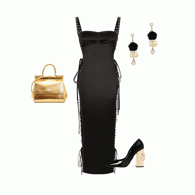 Кардиган Dolce & Gabbana, юбка Balmain, юбка Saint Laurent, босоножки Saint Laurent, лодочки Dolce & Gabbana, клипсы Dolce & Gabbana, серьги Dolce & Gabbana, клатч Dolce & GabbanaРомантическое свиданиеЕсли в новогодний вечер хочется романтики, то источником вдохновения может стать Элис, героиня Николь Кидман, из драмы "С широко закрытыми глазами". На вечеринке, с которой и начинается лента, она предстает перед зрителем в чувственном черном платье. Такое должно быть в гардеробе каждой девушки.