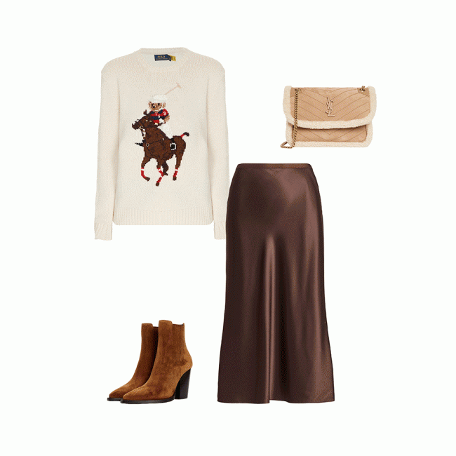 Юбка Polo Ralph & Lauren, свитер Polo Ralph & Lauren, лодочки Dolce & Gabbana, сумка Saint Laurent, джемпер Polo Ralph & Lauren, сумка Saint Laurent, джемпер Polo Ralph & Lauren, клатч Saint LaurentПри упоминании фильма "Красотка" в памяти мгновенно всплывает образ Джулии Робертс в красном платье с открытыми плечами, а что, если посмотреть шире, и выбрать что-то более провокационное и неожиданное?
