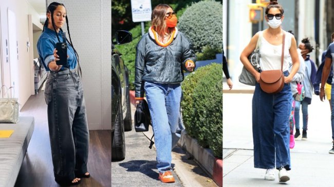 Кари Би, Ирина Шейк, Селена ГомесМешковатые джинсы2021 год прошел под девизом мешковатых форм. Многие знаменитости выбирали вместо узких джинсов широкие. Так, Хейли Бибер, Трейси Эллис Росс и Кэти Холмс были как раз в числе этих модниц. Девушки сочетали свободные джинсы с прилегающим верхом или блейзером.
