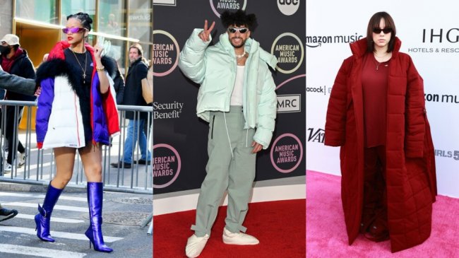 Lil Nas X, Оливия Родриго, Ариана ГрандеЭффектные пуховикиДа, пуховики могут быть нарядными! Такие знаменитости, как Рианна, Bad Bunny и Билли Айлиш, придумали самое удобный зимний образ, выбрав пуховики веселых оттенков и объемных силуэтов. Просто сочетайте их со сдержанной одеждой, чтобы уравновесить образ.