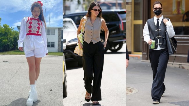 Рианна, Bad Bunny и Билли АйлишКрошечные жилеткиКак оказалось, вязаный жилет и вариант от костюма могут классно смотреться в повседневном гардеробе. Кендалл Дженнер, Розалия и Белла Хадид сделали охотно носили укороченные жилеты непринужденным образом - с джинсами, расслабленными брюками, сумками через плечо и вьетнамками.