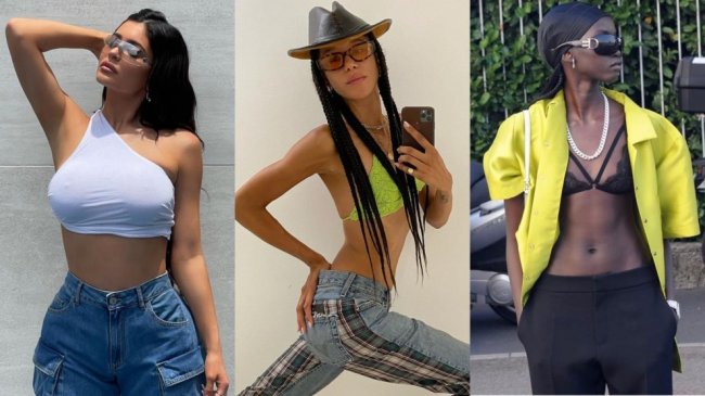 Розалия, Кендалл Дженнер и Белла ХадидY2K оттенкиТренды нулевых годов заняли значительное место в гардеробе звезд. Девушки носили джинсы с заниженной посадкой, кроп-топы, дерзкие мини, блестящие платья и солнцезащитные очки с цветными линзами ( тонированными или прозрачными ).