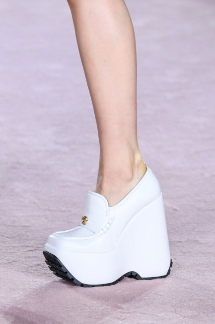 Dolce & GabbanaОбувь с экстремально высокой платформой в 2021 году плавно появилась в коллекциях брендов и начала привлекать внимание модниц по всему миру. Теперь все однозначно готовы к возвращению высоких платформ из 1970-х и внедрению этого тренда в свои гардероб. Saint Laurent показали лакированные туфли с ультра-высокой платформой и тонкой шпилькой, которые ранее ассоциировались исключительно с турбулентной модой 2000-х, Moschino сделали ставку на босоножки на платформе, усыпанные глиттером, а Versace поместили лоферы на экстремальную высоту.