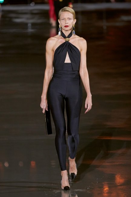 Saint LaurentВ 2022 году на смену обтягивающим платьям приходят сексуальные комбинезоны, повторяющие контур тела. Знаменитости уже успели опробовать данный тренд на себе. Вспомните только выходы Ким Кардашьян в Balenciaga: закрытый наряд черной вдовы на красной дорожке Met Gala, ярко-синий комбинезон с фиолетовым подтоном на вечеринке по случаю бракосочетания своего друга или черный кэтсьют из плотного кружева на премии People's Choice Awards, где Ким получила золотую статуэтку за звание "Иконы моды 2021 года". Еще одна модница, предпочитающая сексуальные комбинезоны, это Хейли Бибер. Свой день рождения она отметила в велюровом кэтсьюте Saint Laurent, а на торжественный ужин во время Art Basel пришла в цветочном комбинезоне этого же бренда.