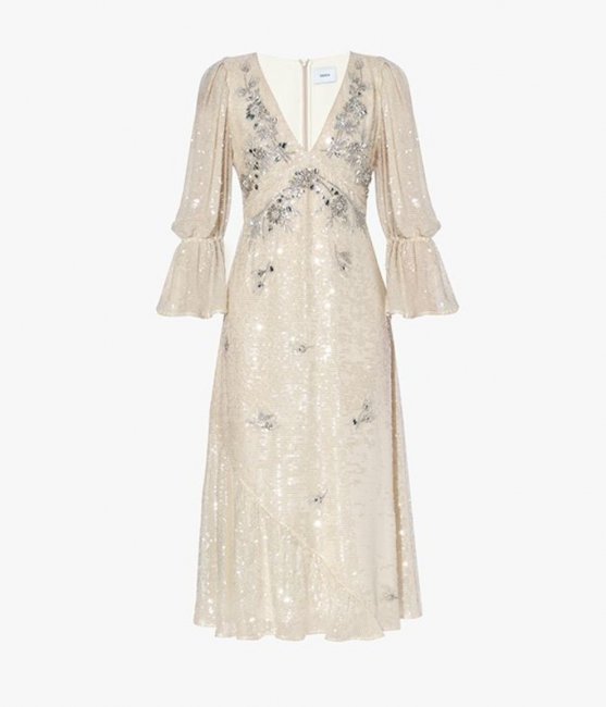 ErdemНевозможно рассказать об этом типе декольте, не упомянув некоторые новые проявления slip dress, как, например, у Chloé. В своей коллекции бренд представил белое макси с V-образным вырезом и черной отделкой, которая еще эффектнее подчеркивает этот тип силуэта.