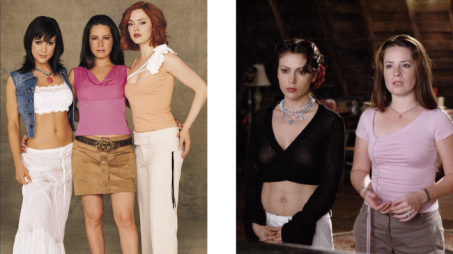 Открытый животА вот открытый живот — это уже дань моде 00-х, когда талия брюк становилась всё ниже, а топы — выше. Из сестер этот стилистический прием чаще всего использовала Фиби, роль которой блестяще исполнила Алисия Милано.