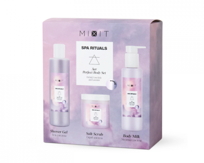 Набор для идеального тела SPA RITUALS «Стихия воздуха» от MIXIT — это три средства, которые помогут превратить уход за собой в настоящий ритуал: тонизирующий солевой скраб для тела, тонизирующий гель для душа и тонизирующее молочко. Именно экстракт орхидеи отвечает за интенсивное увлажнение и смягчение кожи. Также в составе — экстракт готу колы, который обладает лимфодренажными свойствами и антицеллюлитным действием.