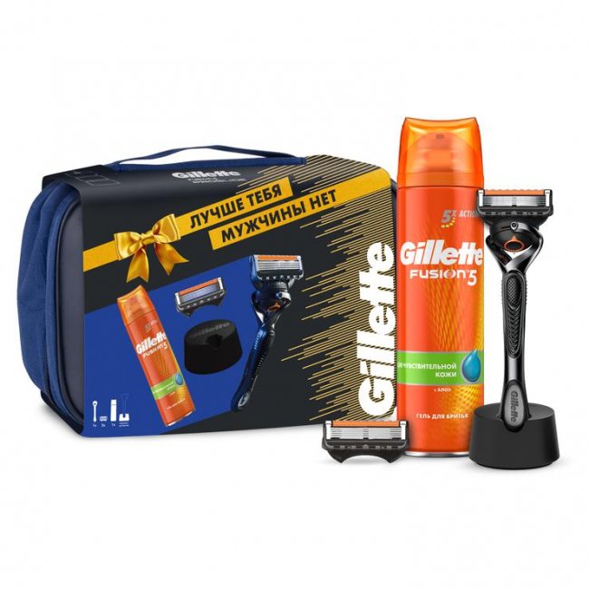 Еще нас уверяют, что нужно давно забыть о бритве как подарке мужчине. Однако если вы спросите самого мужчину, то он, как на духу, ответит: бритва, особенно если она от Gillette, нужна обязательно (мы спрашивали). Поэтому если вас и должны терзать сомнения, то только такие: какой-то из подарочных наборов предпочесть. Потому что обычно Gillette к праздникам заготавливает энное количество уже готовых наборов, при выборе оптимального из которых и начинает кипеть мозг у нас, у девочек. Наш бьюти-отдел внимательно изучил все предложения и «ставит» на вот комплекс. Итак, изучаем, что в него входит. Конечно, сама бритва Gillette ProGlide с 2 сменными кассетами, гель для бритья Gillette Fusion для чувствительной кожи и еще подставка для бритвы. Нам эта подставка показалась очень симпатичным аксессуаром, который отлично впишется в дизайн любой ванной комнаты и придаст обычной повседневной рутине оттенок бьюти-ритуала, потому что именно такие мелочи позволяют почувствовать себя особенным. К тому же такая подставка — это еще очень функционально: не соприкасаясь с влажной поверхностью или другими предметами, ручка дольше сохранит аккуратный вид, лезвия дольше будут оставаться острыми, а смазывающие полоски на хорошо просушенных кассетах будут расходоваться экономнее. И да, все это упаковано в удобную раскрывающуюся косметичку фирменного насыщенного синего цвета — можно использовать в качестве органайзера для аксессуаров в путешествии.