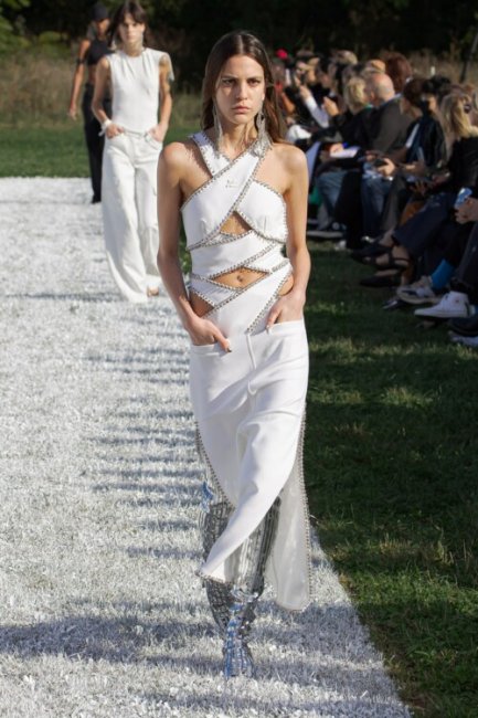 Этой весной самые нарядные пары обуви будут украшены блестящими цепочками и изысканными завязками у щиколоток. Обувайте туфли для вечеринок с анклетами (браслетами-цепочками на ногу), в стиле Versace или украшайте щиколотки нитями жемчуга, как Simone Rocha. Носите босоножки с эффектными ремешками следую примеру Тома Форда и Оливье Рутсена или выбирайте драматические пары с фирменной колючей тканью Чета Ло, обвивающей ноги моделей.