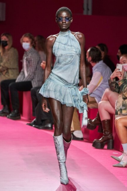 Вряд ли вы видели более длинные молнии, чем в коллекциях Courrèges, Givenchy и Fendi, где сапоги до бедра сочетались с мини-юбками и платьями. Тренд на ботфорты-брюки уже стал обычным явлением в Balenciaga. В этом сезоне Демна Гвасалия представил черные сапоги из лакированной кожи, в которых уже успела появится звезда рекламной кампании - Ким Кардашьян.