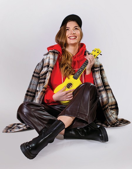 Брюки из экокожи Шоколадно-коричневые брюки из экокожи станут основой casual-образов. Вместе с худи и клетчатой рубашкой-пальто они будут выглядеть неформально. Incity Пальто – 1 999 руб. Толстовка – 2 799 руб. Кепка – 999 руб. Сапоги – 2 799 руб. «Который час?» Укулеле – 2 150 руб.