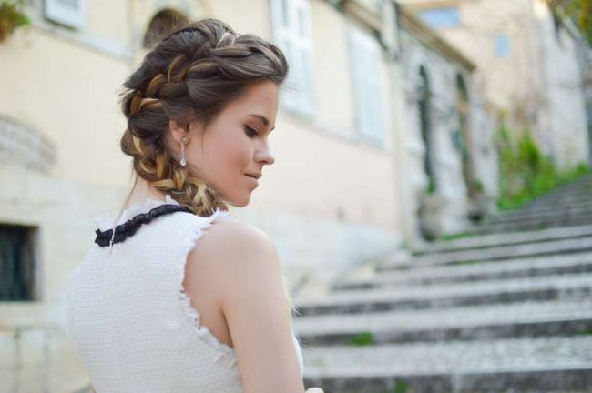 Небрежная коса — прекрасный вариант для праздничного вечера. Сделать такую прическу не так сложно и нудно, как вам могло показаться. Соберите верхнюю часть волос и плетем из них колосок. С каждой стороны добавляем небольшую прядь. Далее плетем обычную косу, но закрепляем ее так, чтобы не было эффекта сильного натяжения. Можно слегка выпустить пряди по длине косы. Такая коса невероятно эффектно смотрится на длинных волосах.