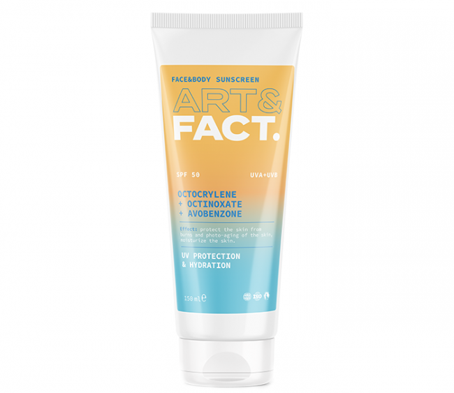 К таким относится Солнцезащитный крем всех типов кожи с химическими фильтрами Octocrylene + Octinoxate + Avobenzone. Face&body sunscreen SPF 50 от ART&FACT. А еще он содержит комплекс современных химических солнцезащитных фильтров, которые препятствуют повреждению кожи UV-лучами — защита от UVB- и UVA-лучей. Ну а активные компоненты в составе крема защищают кожу от ожогов и фотостарения, обладают антиоксидантными и увлажняющими свойствами.