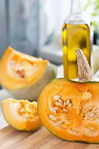 Тыквенная маска. Очищенную тыкву отварите и разомните. 1 ст. ложку полученной массы размешайте в равных пропорциях с йогуртом. Нанесите массу на 15 минут, после чего снимите влажным тампоном из ваты, затем ополосните лицо водой.