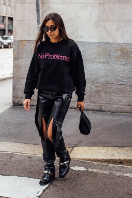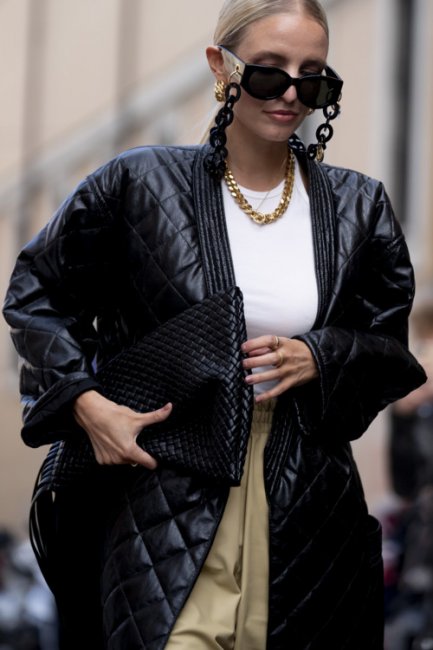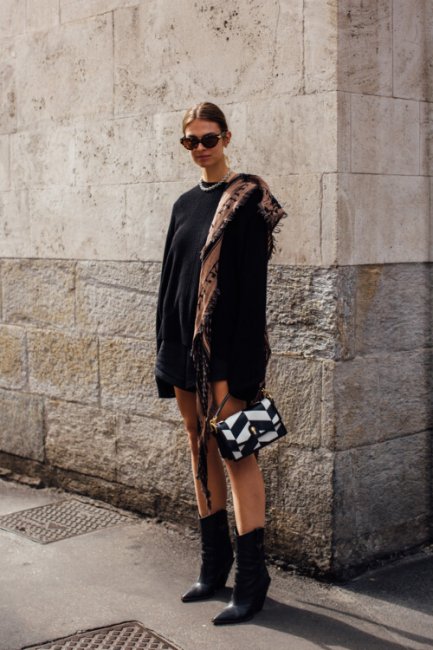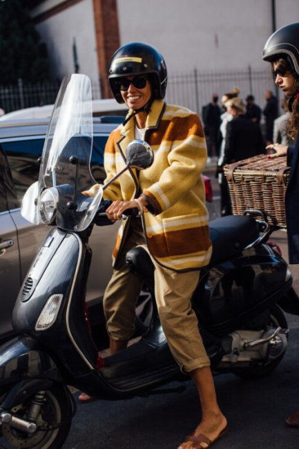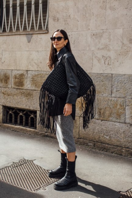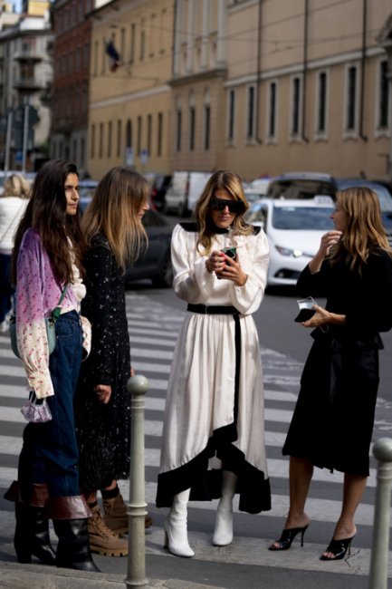 Неделя моды в Милане ближется к своему завершению, а ее гости спешат продемонстрировать как можно больше актуальных осенних образов. Глядя на их фотографии так и хочется купить себе комбинезон из цветной кожи, платье с юбкой-бахромой, стеганый жакет и белые ботфорты, которые идеально подходят для еще теплых и сухих сентябрьских дней.