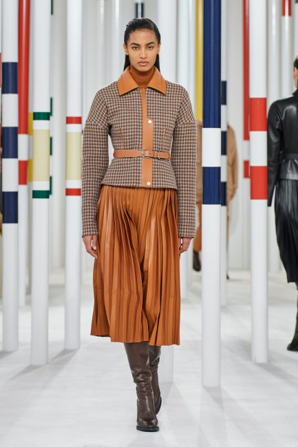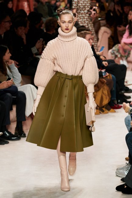 HermesВязаные и трикотажные свитера и кардиганы в осенне-зимнем сезоне 2020/2021 в особом почете. И если необходимо что-то эффектнее, чем стилизация с джинсами, как нельзя лучше подойдет дуэт с кожаной юбкой: в ход идут и свитера с объемными рукавами, как на показе Fendi, и укороченные кардиганы с перламутровыми пуговицами.
