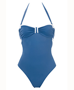 ФРАНЦУЗСКАЯ РИВЬЕРА Бикини в полоску — слишком банально. В 2009 году нам предлагают цельный темно-синий купальник в стиле «ретро» с белой окантовкой, маленькими пуговичками и отстегивающимися бретельками. Чашечки снабжены дополнительной тонкой поролоновой прослойкой, которая создает комфорт и помогает купальнику идеально сидеть.