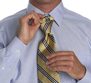 Если концы галстука не совпадают, начните заново, соответственно подрегулировав длину широкого и узкого концов. Убедитесь, что галстук хорошо лежит под воротничком, и выровняйте узел строго по центру.
